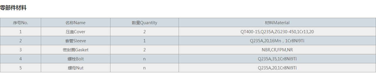 | 1 | 壓蓋Cover | 2 | QT400-15,Q235A,ZG230-450,1Cr13,20 |