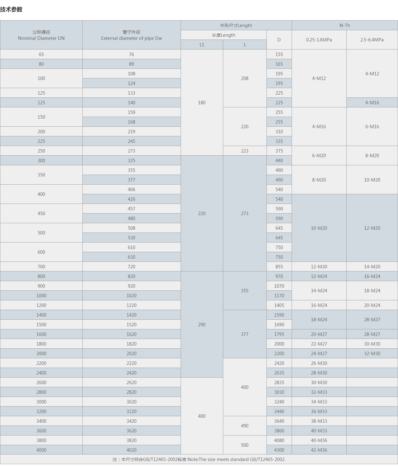 | 長度Length | D | 0.25-1.6MPa | 2.5-6.4MPa | |||